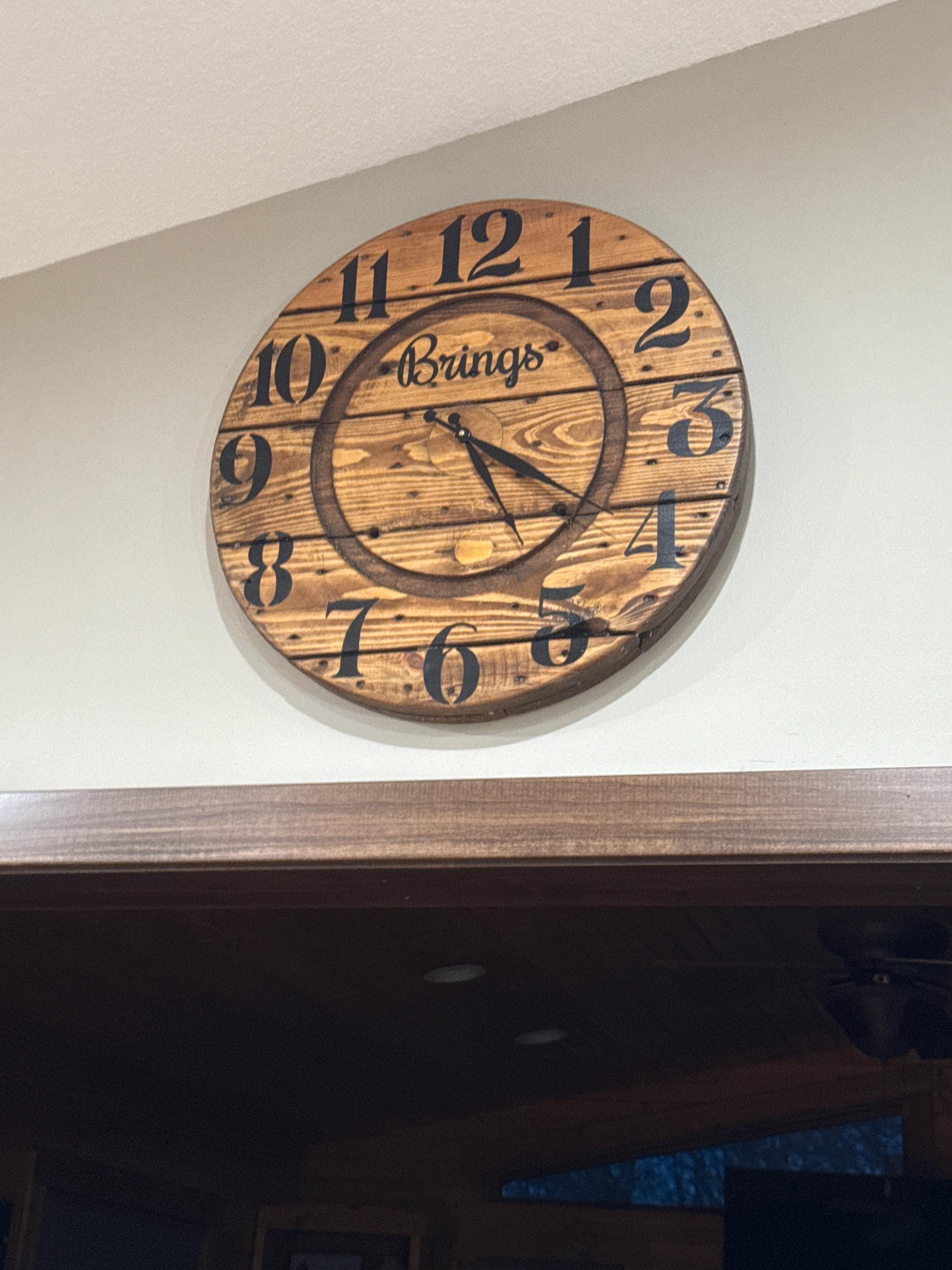 Each clock is a one-of-a-kind piece, featuring natural wood grain, knots, cracks, and character marks from its industrial past. We’ll handcraft your design to bring your vision to life — no two clocks are ever the same!