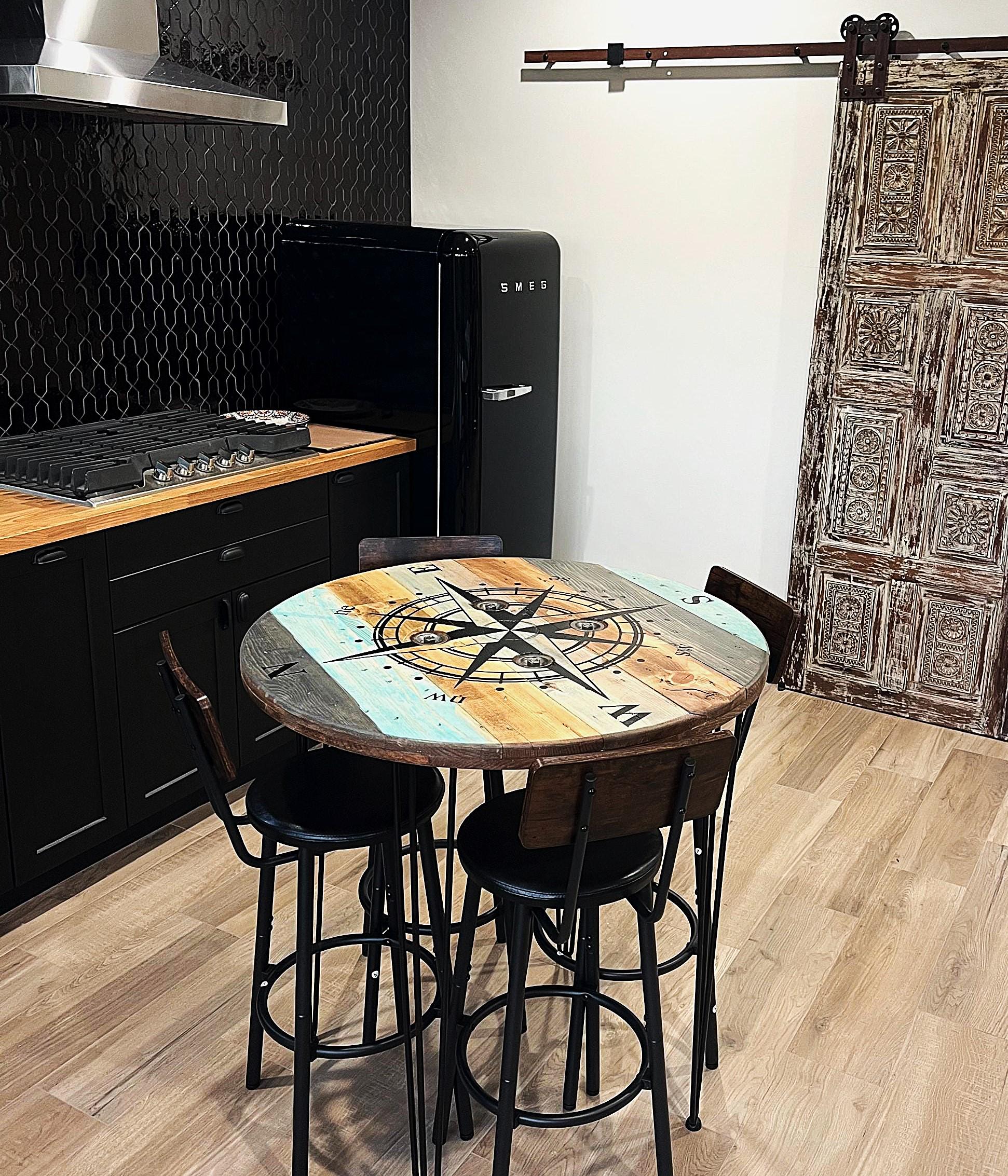 Handcrafted from authentic industrial wooden spools, our custom farmhouse spool tables are built to make a statement. Whether you're decorating a cozy living room, a modern farmhouse porch, or a rustic cabin kitchen, this industrial-style table is personalized to fit your vibe.