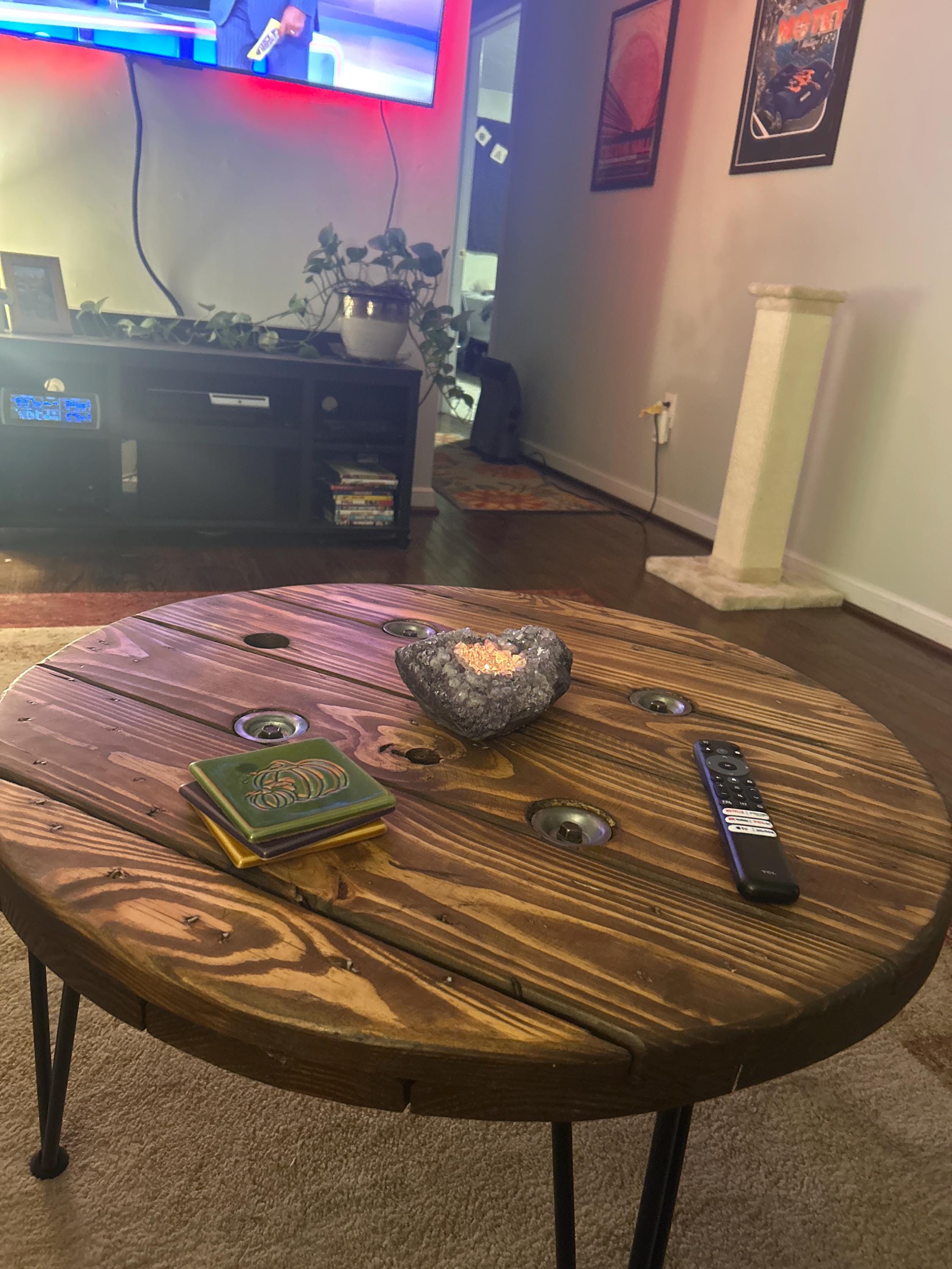 Personalized Farmhouse Wooden Spool Table – Rustic Industrial Coffee Table | Custom Colors & Legs | Upcycled Furniture | Outdoor or Indoor Use